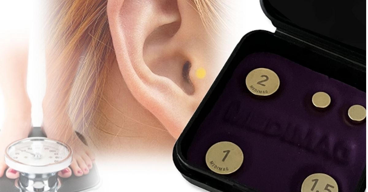 MEDIMAG "DIE ABNEHMHILFE", Therapiemagnete sind zur Selbstbehandlung und lassen sich einfach am Ohr anbringen. Die Magnete passen sich, dank den verschiedenen Grössen, den Ohrformen an.